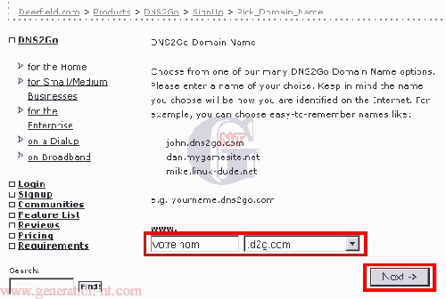 à votre serveur ftp privé), puis choisisez ".d2g.com"