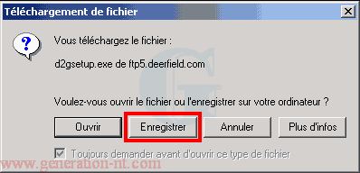 sur "Enregistrer" et placez le fichier d2gsetup.exe